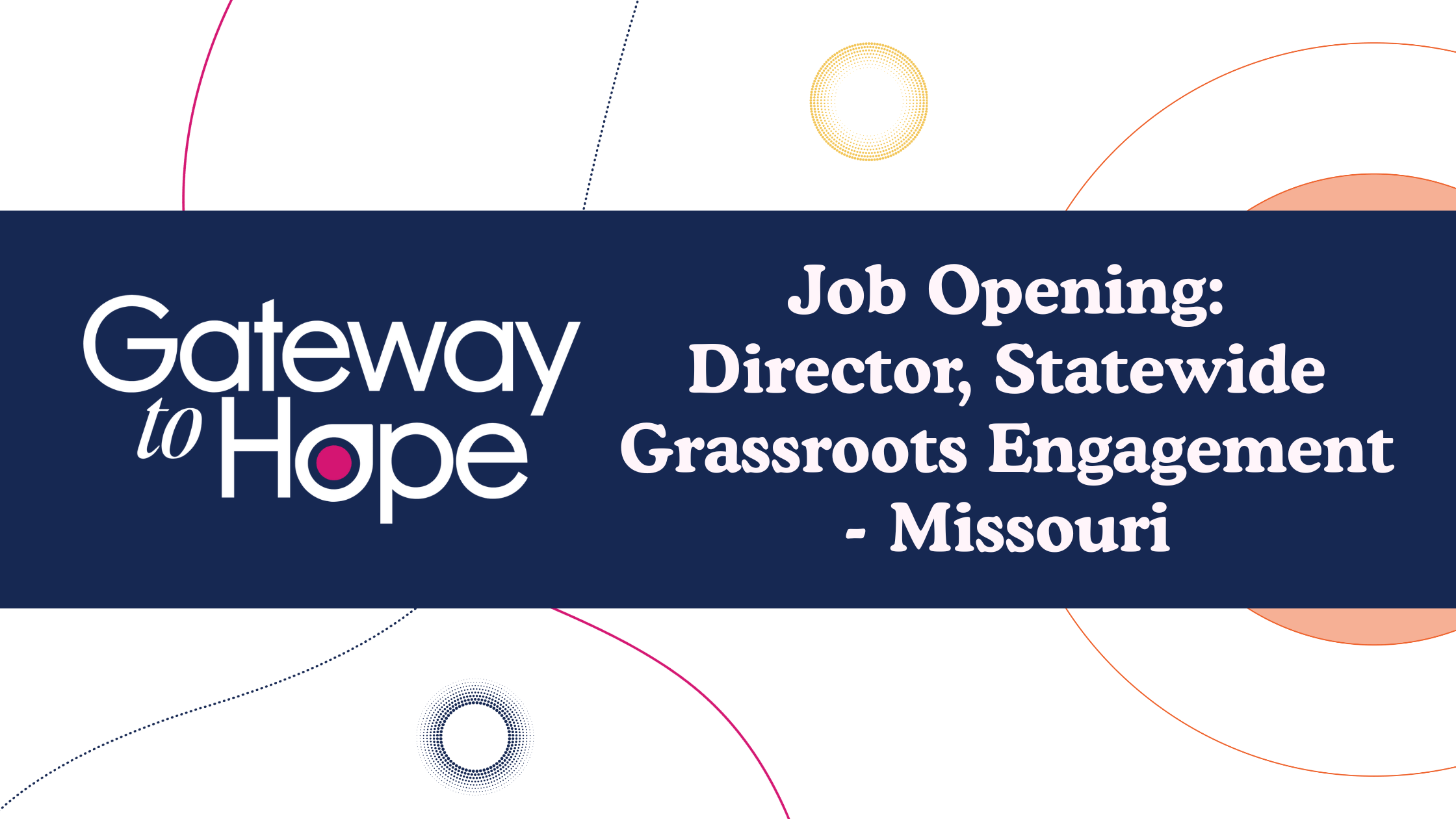 The Director of Statewide Grassroots Engagement – Missouri, reporting to the Chief of Philanthropy and Strategic Communication, will serve as a vital connector between Gateway to Hope’s mission and local communities across Missouri. This enthusiastic and skilled individual will be responsible for creating and implementing strategies to build and mobilize local support to advance Gateway to Hope’s mission at the community level. This person’s work will bridge community engagement, fundraising, and volunteer coordination. This role is responsible for building and maintaining strong relationships with local partners, engaging and mobilizing grassroots support, serving as a hub of information regarding Gateway to Hope’s services, and connecting communities to our mission. The ideal candidate for this role is a self-starter, can work strategically using data to inform workflows, is a dynamic communicator, and very comfortable with regular statewide travel and community engagement. This candidate will be adept in partnering with multiple leaders, including CEO and Senior Director of Programs, and collaborating across departments and with multiple stakeholder groups. Working alongside leadership and consultant resources, this candidate will build and execute multi-disciplinary engagement plans in a hyper-local level across the state, with a focus on partnering with program staff to reach more communities that can benefit from GTH’s free services and on cultivating new donors to raise the vital funds necessary to serve more women annually. This position can be based anywhere in Missouri, with preference for Kansas City area or Columbia/Jefferson City area.